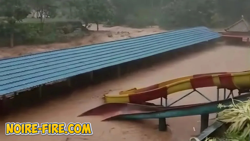Dalam rekaman video yang tersebar di media sosial, terlihat arus air berwarna kecoklatan menghantam dan menggenangi area dalam dari fasilitas wisata tersebut. Tidak hanya objek wisata, lahan sawah di sekitarnya juga terendam oleh air bercampur lumpur yang mengalir deras.